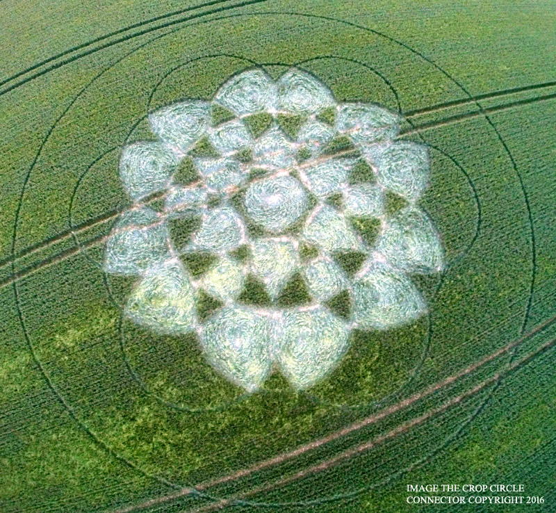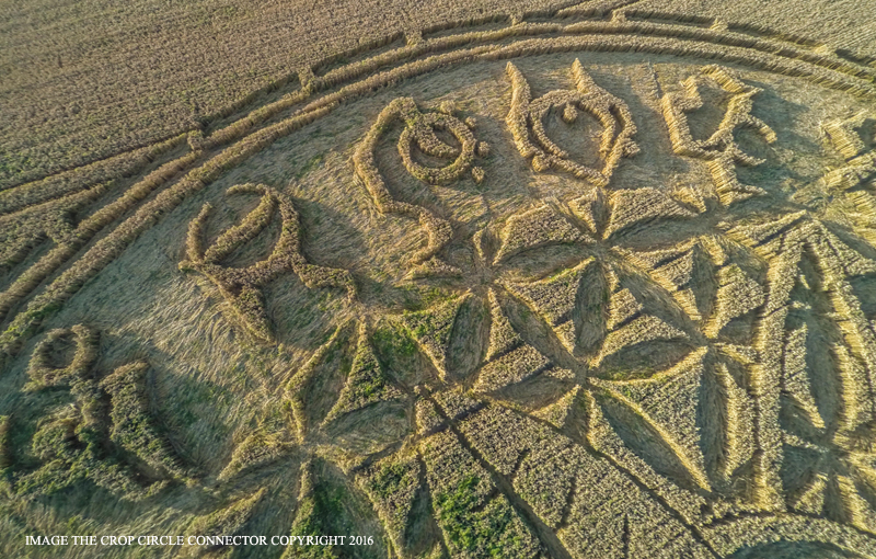 Her er nogle af mine favoritter blandt de flotteste korncirkler fra sommeren 2016. Jeg takker Crop Circle Connector, Lucy Pringle, Tom Keegan, Mr. Gyro, Frank Laumen, Hugh Newman og Jane Barford for lån af disse billeder. De første to kilders fremragende hjemmesider er de første på vores linksside her.