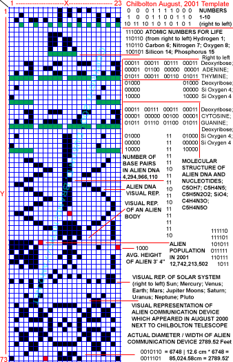 Det nye lange lodrette tal i DNA-underafdelingerne i sektion 3 og 4 er tillige 525,000 enheder højere end menneskets i den venstre figur, og DNA'et bliver derved mere komplekst. Interessant nok, har Carl Sagan også tegnet dette højere tal i hans snarligt efterfølgende publicerede illustrationer af det allerede udsendte signal, som i virkeligheden indeholdt det førnævnte lavere tal. Har korncirklens skabere nu bekræftet eller efterlignet det nye tal fra hans senere illustrationer? Har han haft adgang til hemmelig klassificeret viden om emnet? Eller...?