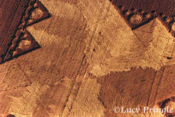 Foruden flotte luftfotos, viser jeg de bedste af de 700 farvefotos, jeg selv tog af 67 korncirkler i Sydengland i juli/aug. i årene 2000 - 2003. Der er primært to lige fascinerende vinkler, man kan opleve cirklerne fra; nemlig helikopterhøjde og direkte ved at være inde i dem. Detaljer og overraskende variationer i delenes liggemønstre, specielt i cirklernes centre, inspirerer ofte de besøgende til ærefrygt og en åben stilhed, og jeg forsøger med mine fotos at viderebringe noget af stemningen, kombineret med et skarpt øje for detaljerne, som afslører noget af cirklernes tilblivelsesproces.